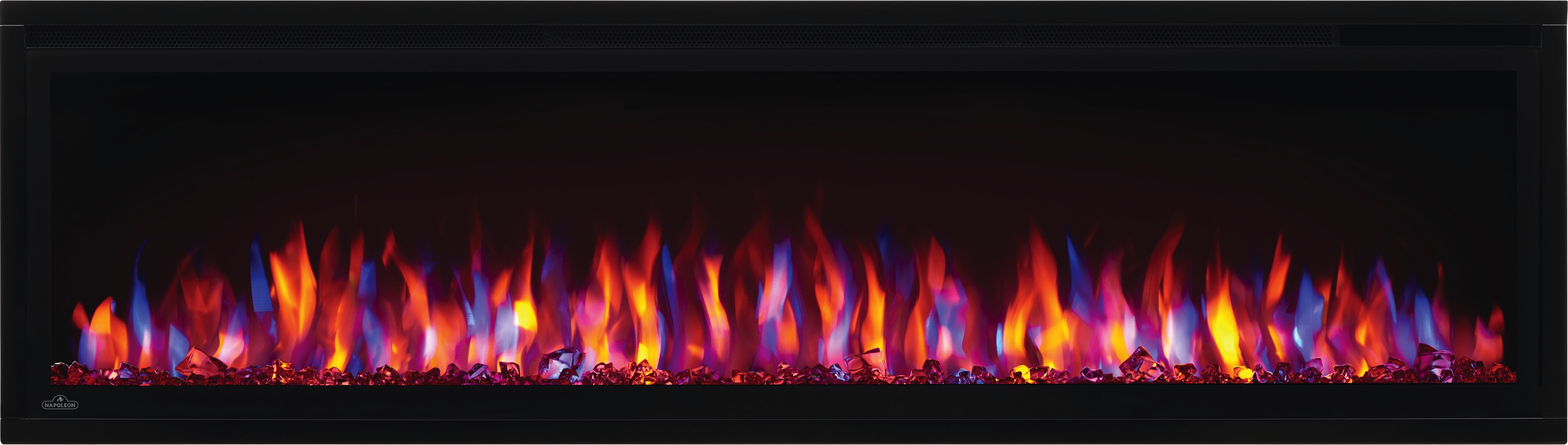 - Crystal clear cube ember bed accents the flame