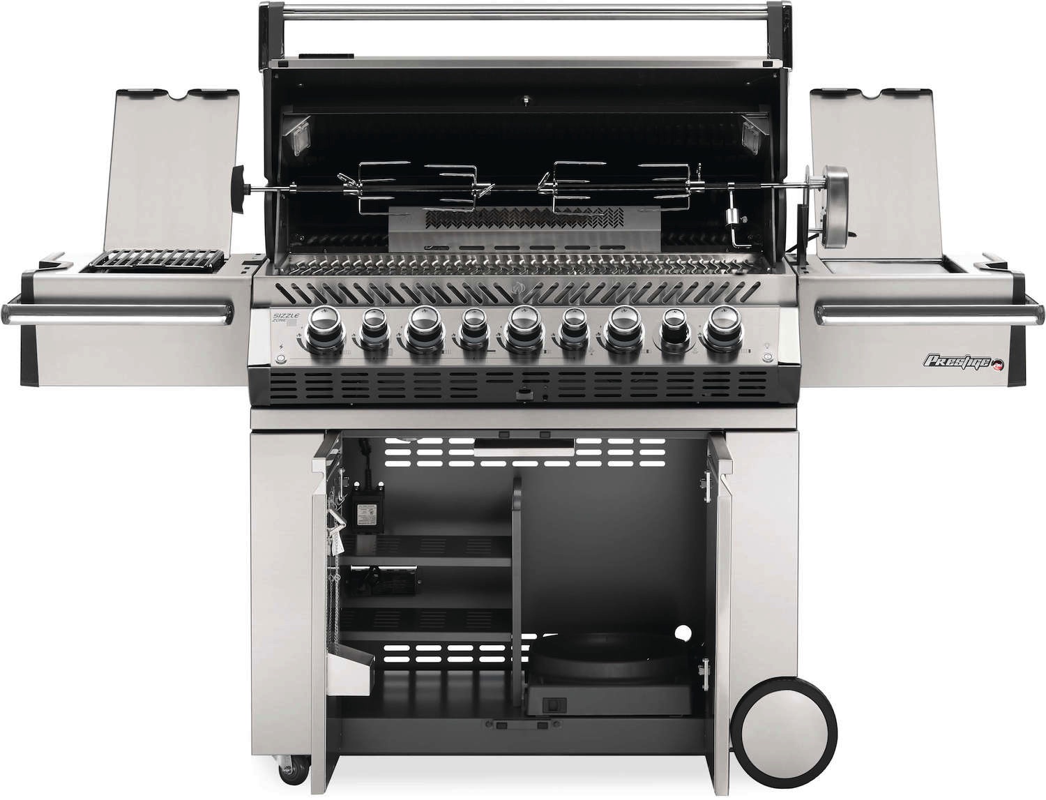 With features you don't see on the most grills, the Napoleon Prestige PRO™ 665 Natural Gas Grill with Infrared Rear and Side Burners has everything needed for professional grade backyard grilling. Superior heat retention provides oven-like performance and first-rate searing; you'll know it's a Napoleon with those iconic WAVE™ cooking grids for those distinctive sear marks and proximity lighting. Use the integrated smoker tray and dedicated burner to add smoke to all of your favorite grilled dishes. On the outside, a shining stainless steel body provides durability against the elements while chrome details add luxury. Not just durable on the outside; under the lid is the same quality stainless steel used for the cooking grids, tube burners and dual-level sear plates. The LED Spectrum NIGHT LIGHT™ Control Knobs have near limitless color options making night-time entertaining a breeze, and they also glow red when the gas is left on as a safety feature. Enjoy evenly cooked restaurant style meals with the rear infrared burner and rotisserie.